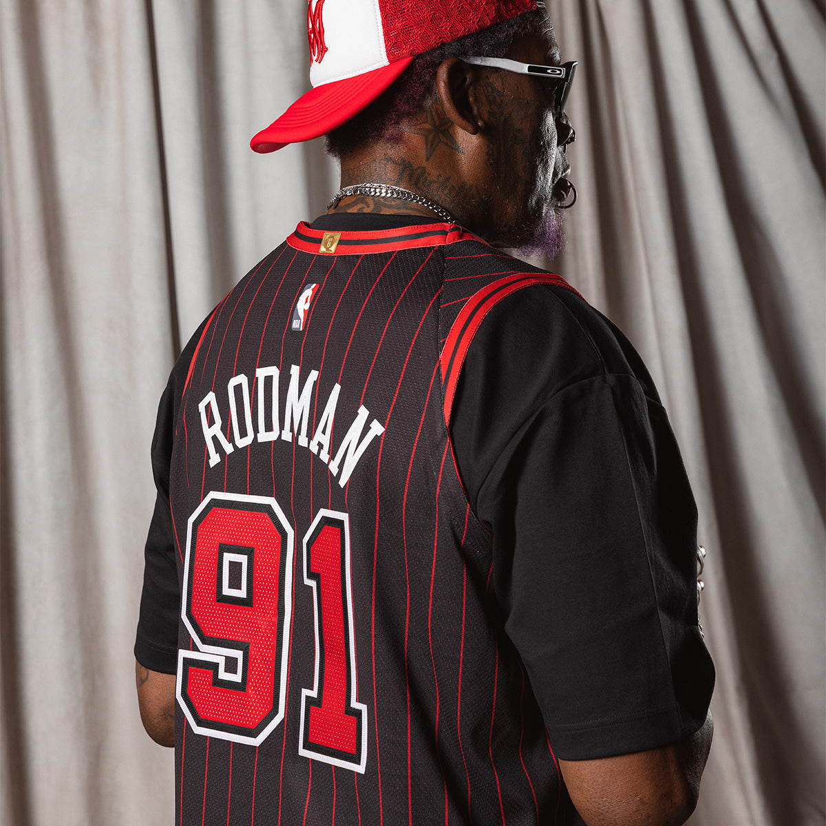 Styled by Bulls legend Dennis Rodman, the Statement Edition jersey blends on-court energy with off-the-court fashion.
