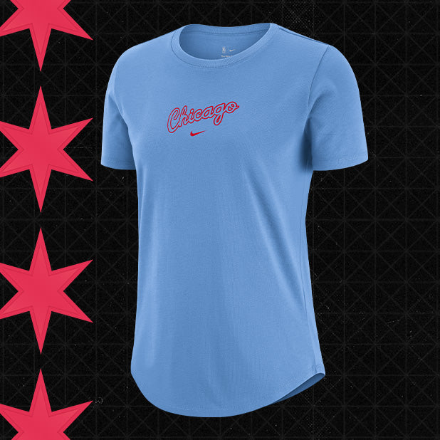 Shop 2025-26 Chicago Bulls Women’s City Edition apparel featuring black, light blue,...